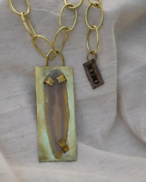 Piedra ágata beige y marrón claro, enchapada en bronce, con cadena bronce.